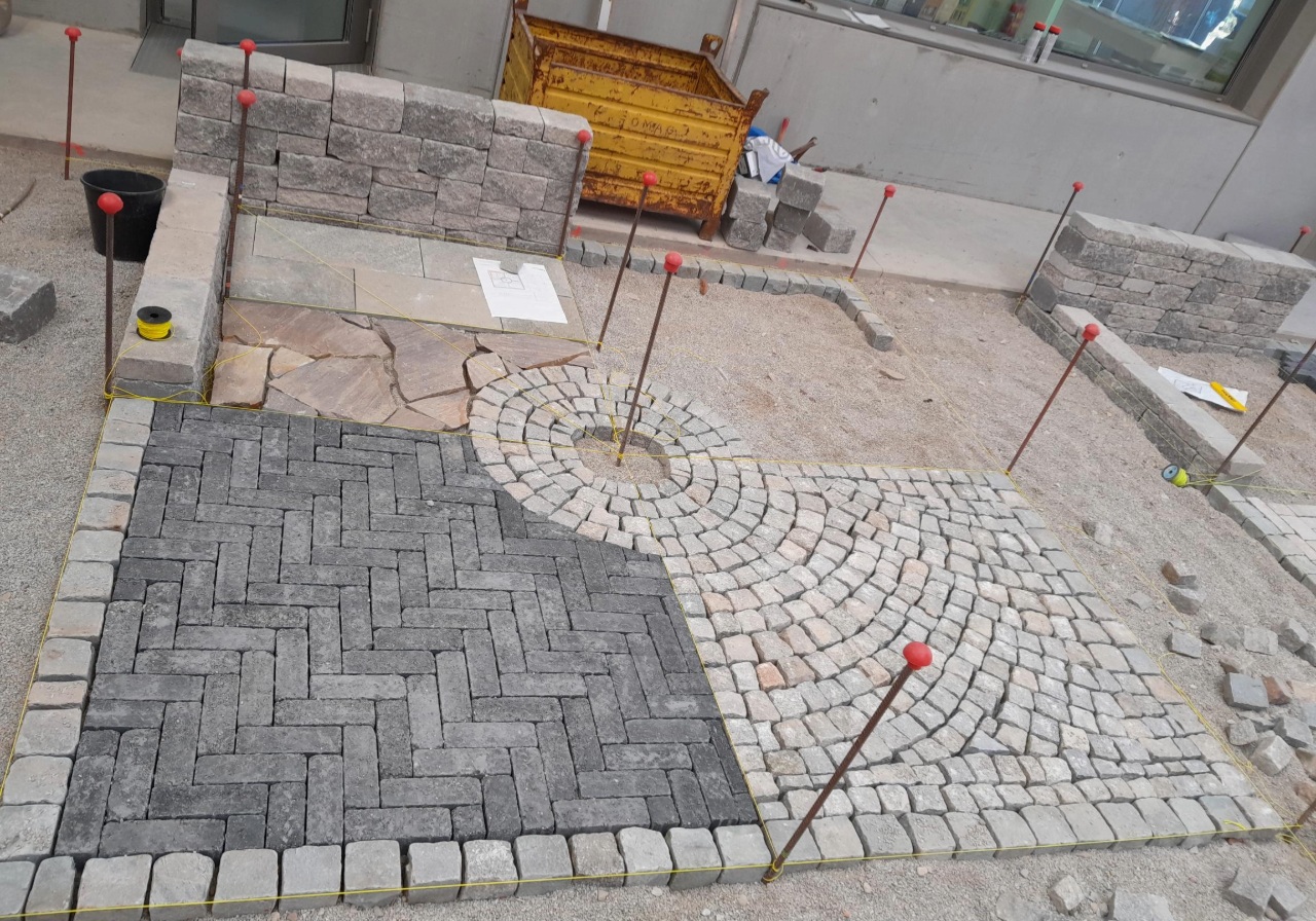In anspruchsvollen Wettbewerbsaufgaben zeigte Luca sein Talent in verschiedenen Verlegetechniken. Das Kopfsteinpflaster im Segmentbogen setzte er präzise um, das Betonpflaster im Fischgrätverband schnitt er sauber ein und auch die Platten im Wildverband gelangen ihm ausgezeichnet. Zusätzlich bewies er sein Können beim Errichten einer Trockenbaumauer.