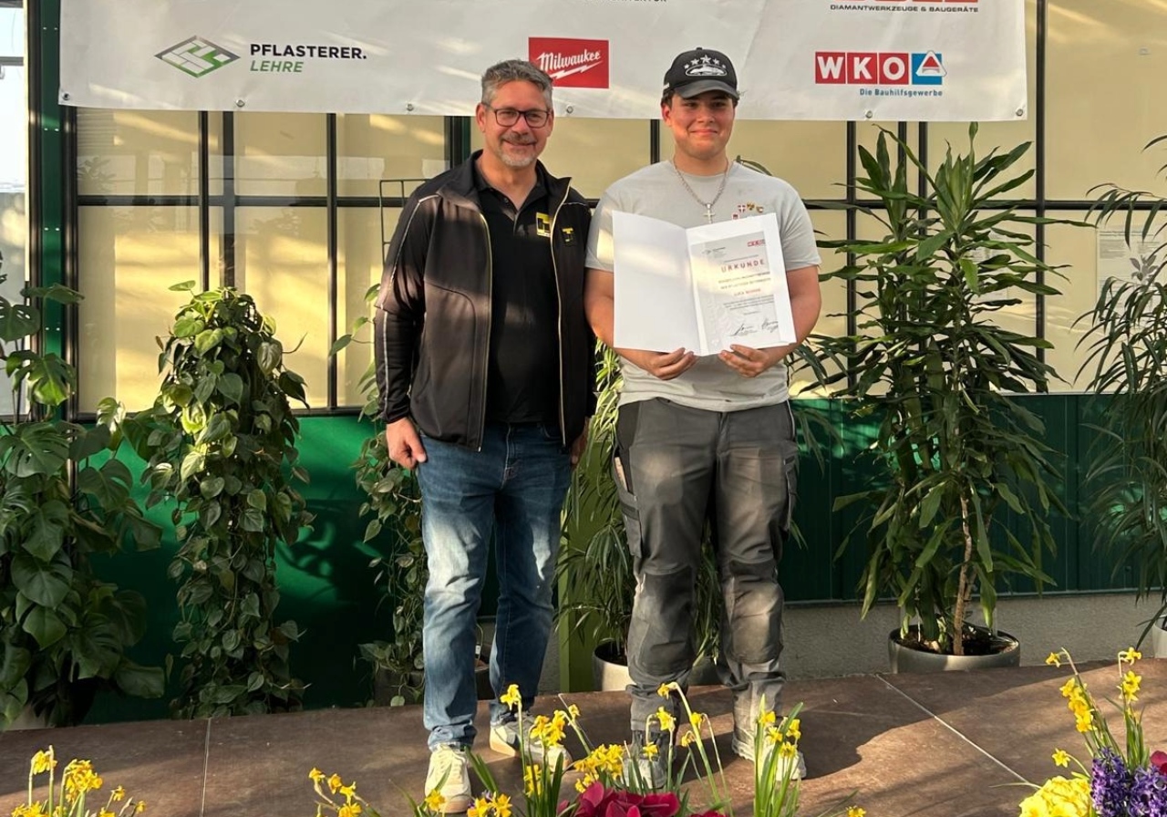 Vergangene Woche fand der Bundeslehrlingswettbewerb der Pflasterer in Langenlois statt. Eine der wichtigsten Leistungsschauen im österreichischen Pflastererhandwerk. Auch unser Lehrling Luca Scordo stellte sich dieser Herausforderung und überzeugte mit großem Einsatz und handwerklichem Können.